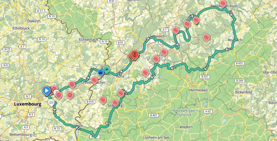 Cette sortie moto t’emmène depuis le Luxembourg jusqu’au cœur des vignobles allemands, avec une destination pleine de charme : Bernkastel-Kues, une ville historique, colorée, vivante et biker-friendly.